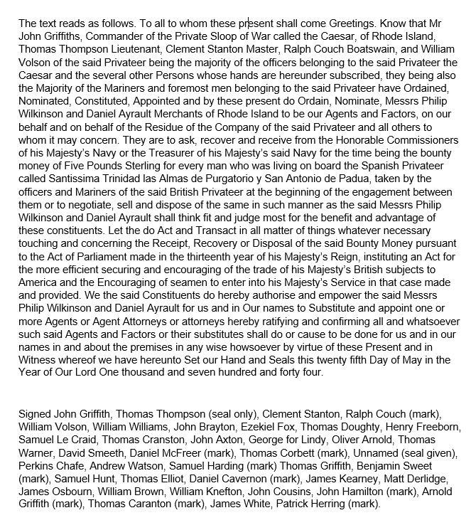 of Jenkins’ Ear. It calls for the merchants, acting as prize agents,