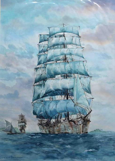 ship leaving Bermuda. circa 1930. 14 x 20 inches. Watercolour.